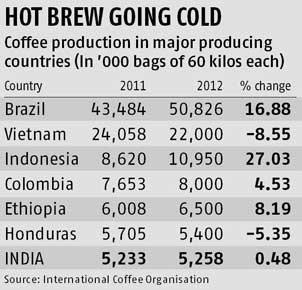 Trong niên vụ 2012/2013, dù khối lượng xuất khẩu giảm nhưng Việt Nam chỉ đứng sau Brazil về xuất khẩu cà phê. Số liệu từ Tổ chức Cà phê Quốc tế (ICO) cho thấy Việt Nam xuất khẩu được 1,1 triệu bao cà phê (loại 60kg) trong tháng 9, đưa khối lượng xuất khẩu của cả niên vụ 2013 (từ tháng 10/2012 đến tháng 9/2013) lên xấp xỉ 20 triệu bao, giảm 7,9% so với niên vụ 2011/2012(21,7 triệu bao). Với khối lượng trên, Việt Nam tiếp tục là nước xuất khẩu cà phê lớn thứ hai thế giới.