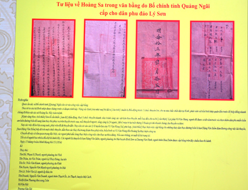 The exhibition of historical and legal evidences asserting that Hoang Sa (Paracel Islands) and Truong Sa (Spratly Islands) belong to Vietnam is held in the central province of Phu Yen from March 28 to April 3, on the occasion of Vietnam Seafood Festival 2014.