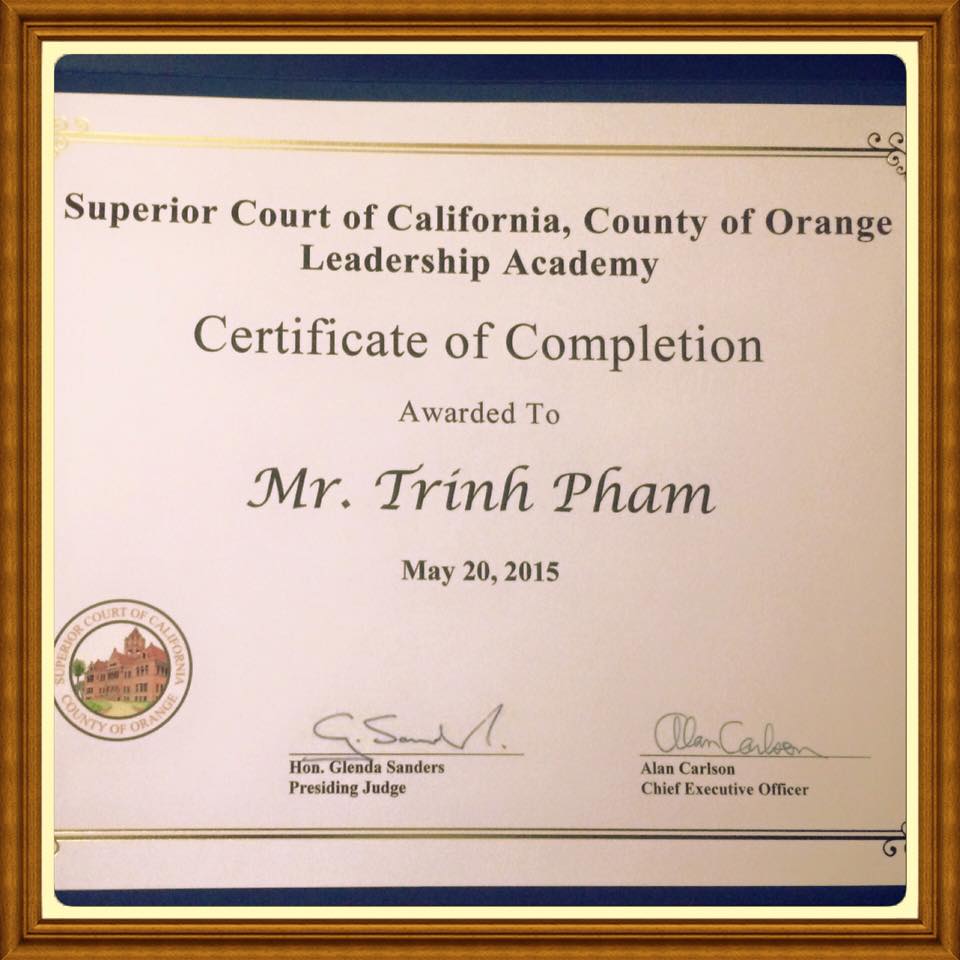 My honor to graduate from The Superior Court of California, Orange County Leadership Academy. It was also my pleasure to represent the Vietnamese-American Chamber of Commerce in this academy. Making our community a safer, healthier, and more fulfilling place to live, work, and play, today and for generations to come is the mission of the County of Orange. By approaching leadership not only as a way of “doing” but also as a way of being, the goal of the program is to make the County organization a more connected and effective community. #Graduation#SuperiorCourtofOrangeCounty #OrangeCounty #LeadershipAcademy2015#Leadership