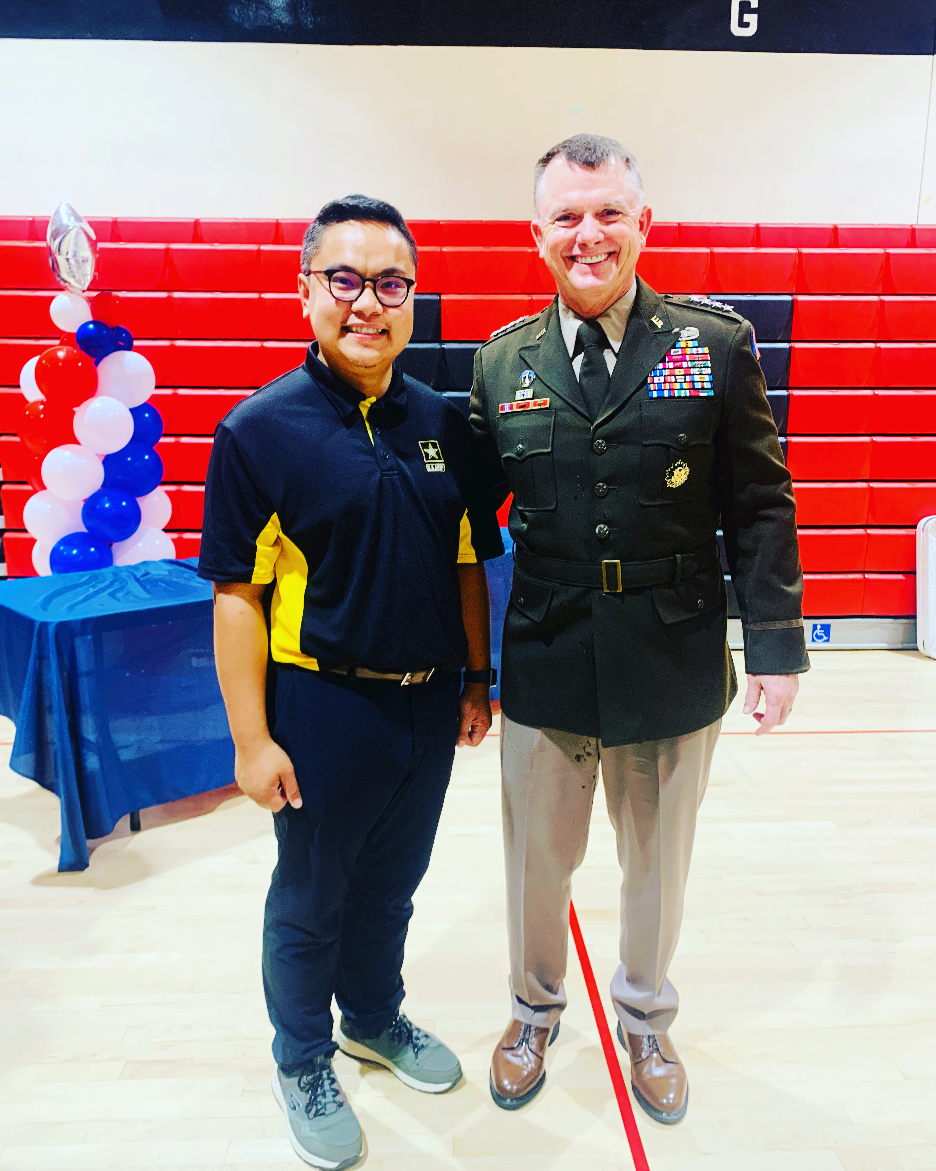 Trinh “Sky” Pham meets with four-star General Paul E. Funk II in 2021